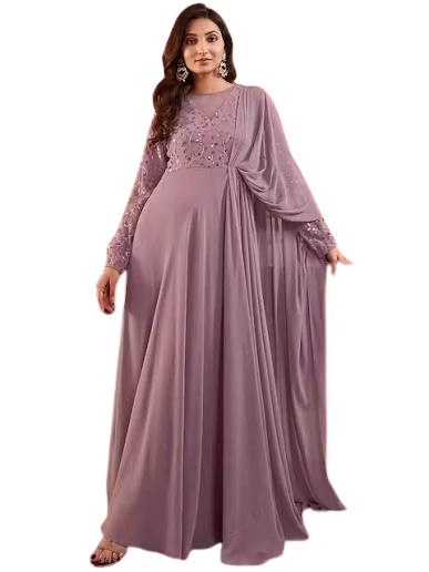 Step into the spotlight with this absolutely stunning Mauve Sequined Georgette Gown. Designed for those special occasions, this gown effortlessly blends traditional elegance with contemporary style. The beautiful soft mauve (dusty purple) color is both sophisticated and universally flattering.